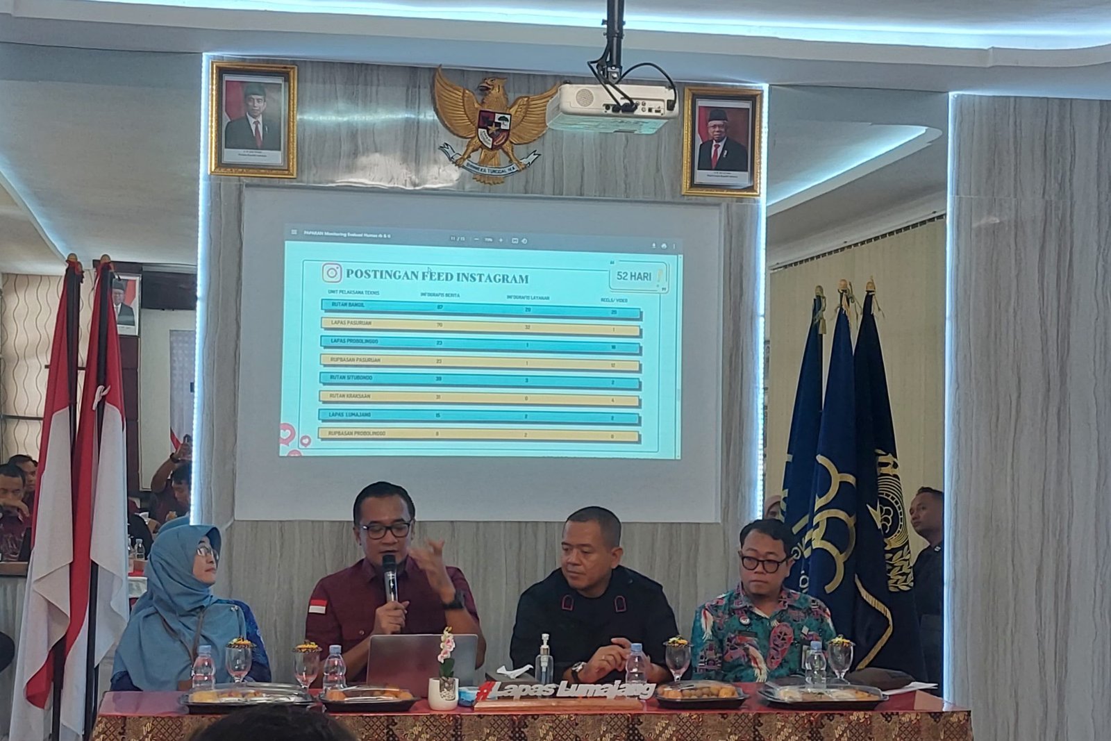 Kegiatan ini diawali dengan sambutan hangat dari Kepala Lembaga Pemasyarakatan Kelas IIB Lumajang, Mahendra Sulaksana, yang menyampaikan pentingnya meningkatkan kualitas pelaporan dan kehumasan di lingkungan kementerian hukum dan HAM Jawa Timur.