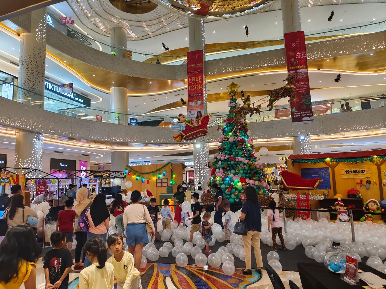 ” Salah satunya pohon Natal dengan Santa’s Village. Di sini ada bagian-bagiannya ada Hanggar, ada tempat pemberian kado kemudian ada Santa Bath up yang bisa dilihat atau jadi ajang foto untuk bermain bersama balon seperti layaknya mereka mandi balon,” tambahnya.