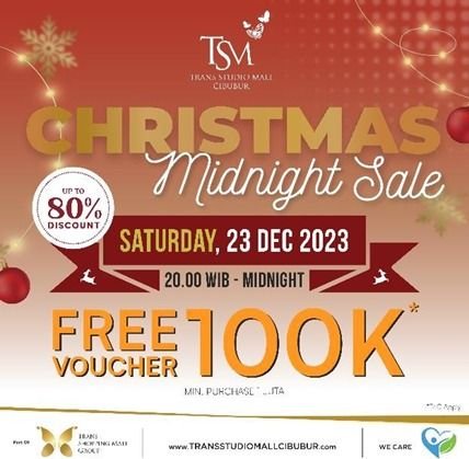 Tidak hanya itu, untuk memanjakan customer pecinta diskon, Trans Studio Mall Cibubur juga mengadakan Christmas Midnight Sale dengan penawaran diskon hingga 80% dari tenant-tenant yang ada. Berbagai penawaran yang dijamin akan membuat customer semakin tergiur untuk berbelaja, karena ada cashback seratus ribu rupiah untuk customer yang berbelanja. Para pengunjung juga akan dihibur oleh DJ Performance, Live Music dan berbagai kemeriahan lainnya. | Eka*