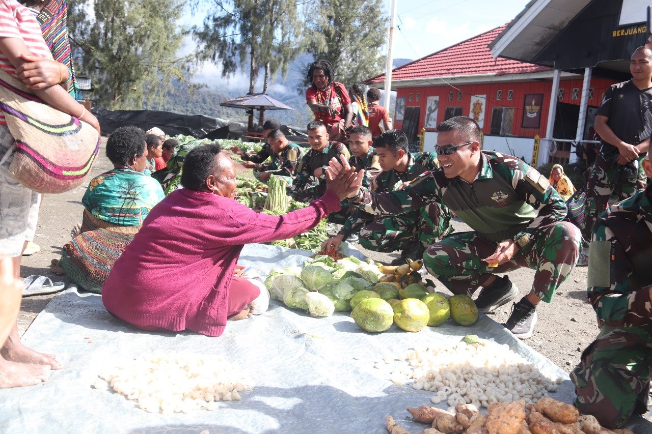 “Kami semua warga Intan Jaya sangat merasakan manfaat adanya kegiatan borong hasil bumi yang diadakan oleh Satgas 330. Selain dagangan selalu diborong semua, warga juga dapat berbagai macam hadiah dari om-om 330 berupa baju, bibit dan obat-obatan. Semoga Tuhan selalu berkati dan lindungi Satgas 330. Amakanie”, ujar Mama Juliana berseri-seri.| Bagus Wirawiri*
