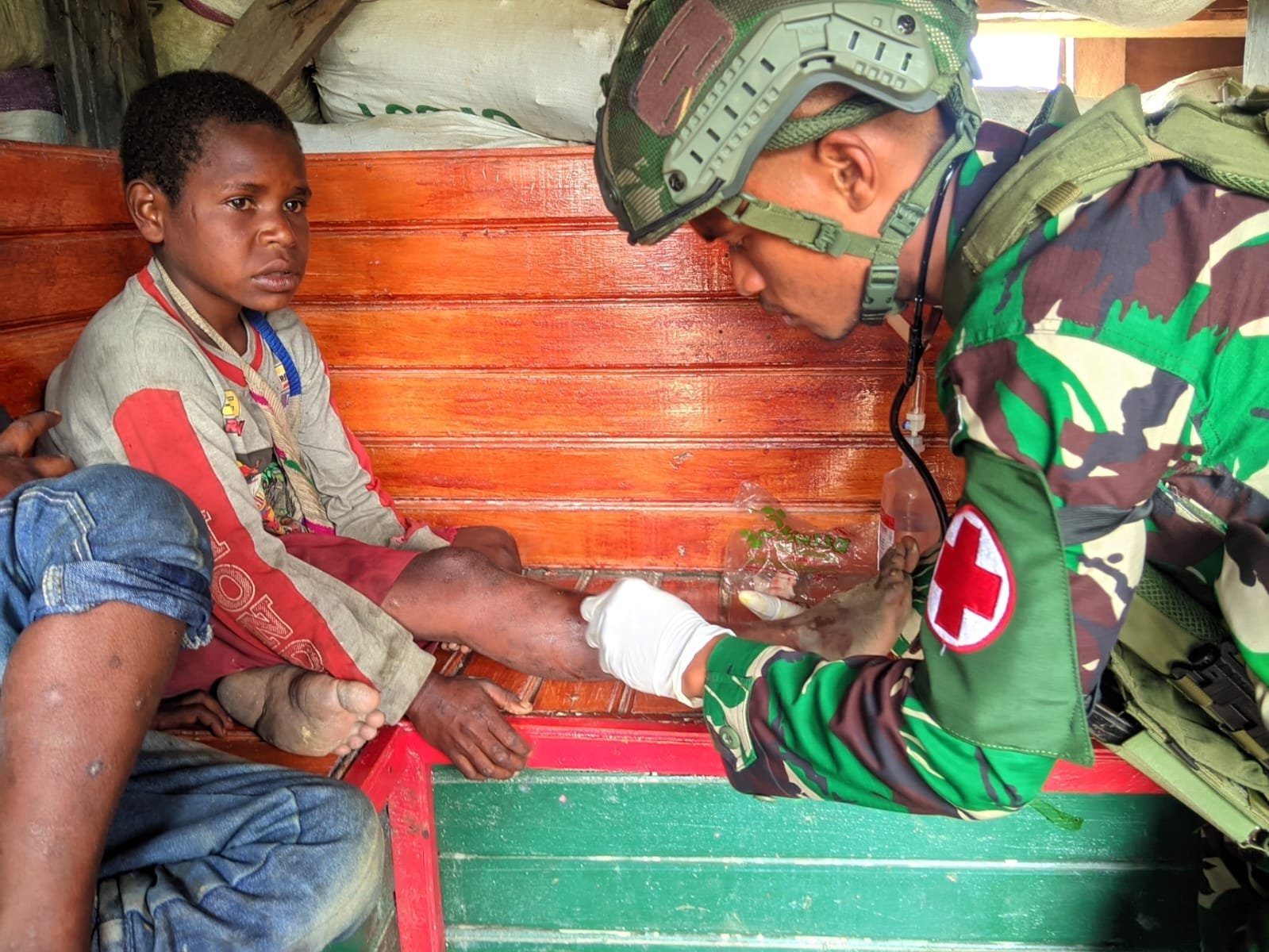 Radarjakarta.id | PAPUA – Menjamin kesehatan warga dan membantu program pemerintah bidang kesehatan di wilayah Papua, Satgas Pamtas Mobile RI-PNG Yonif 509/Balawara Yudha berikan pelayanan kesehatan yang dilaksanakan di Pos Koper (Kodim Persiapan) di Kabupaten Intan Jaya, Papua. Kamis (04/04/2024).