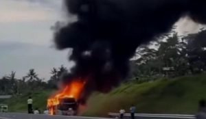 Nahas, sebuah bus Rosalia Indah ludes terbakar di ruas Tol Solo-Semarang, tepatnya di wilayah Desa Kiringan, Kecamatan Boyolali, Kabupaten Boyolali, Sabtu (16/3/2024) sore.