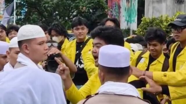 Badan Eksekutif Mahasiswa Universitas Indonesia (BEM UI) menggelar aksi demonstrasi di depan Mabes Polri, Jumat (27/2/2026). Aksi penyampaian pendapat di muka umum tersebut berlangsung tertib dengan pengawalan ketat aparat kepolisian di kawasan strategis ibu kota.