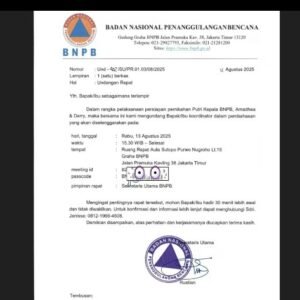 Kepala Badan Nasional Penanggulangan Bencana (BNPB) Letjen TNI Suharyanto tengah menjadi sorotan setelah beredarnya surat undangan rapat persiapan pernikahan anaknya yang menggunakan kop resmi BNPB.