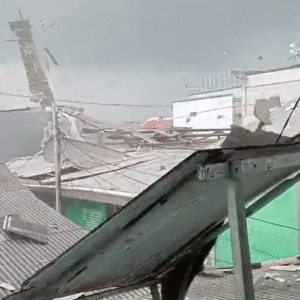 Sebuah video viral di media sosial memperlihatkan detik-detik angin puting beliung menerjang kawasan Kalideres, Jakarta Barat