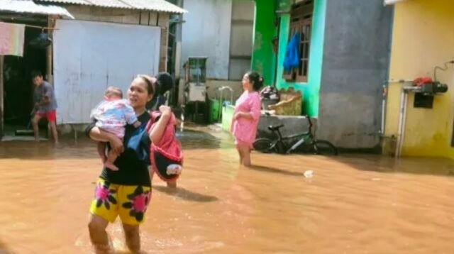 “Air naik terus sejak tadi malam, sekarang sudah sekitar satu setengah meter.” Joni, warga Kampung Melayu