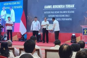 Kantor Wilayah Kementerian Hukum dan HAM Sulawesi Selatan menerima penghargaan terbaik pertama berkinerja terbaik tahun 2023 kategori kantor wilayah besar dari Menteri Hukum dan HAM (Menkumham).