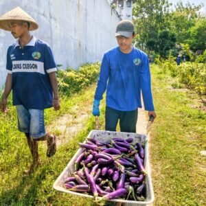 Lembaga Pemasyarakatan (Lapas) Kelas IIA Cilegon, Kantor Wilayah Kementerian Hukum dan HAM Banten, memanen hasil budidaya terong di lahan pembinaan warga binaan.