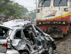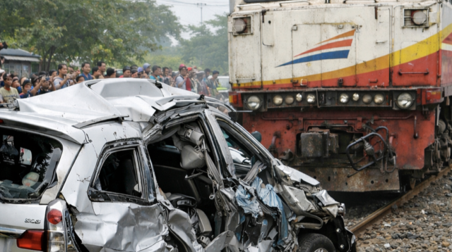 “Warga sudah berteriak memperingatkan, tetapi tabrakan tak terhindarkan saat kereta melaju kencang dan menghantam minibus di perlintasan tanpa palang.”