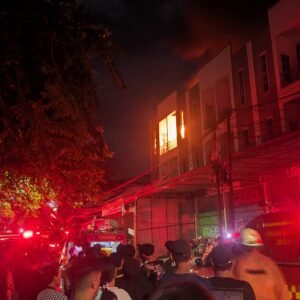 Kebakaran hebat melanda sebuah ruko sparepart motor di sekitar Pasar Ganefo, Jalan Cemara Raya, Cengkareng Barat, Jakarta Barat.