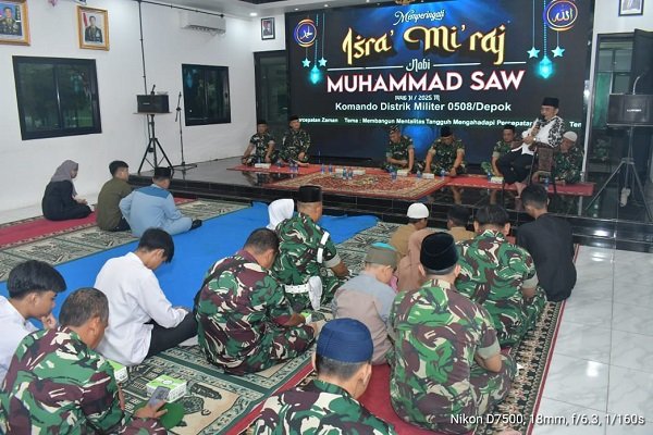 RADAR JAKARTA | Depok – Kodim 0508 Depok Gelar Isra Mi’raj Nabi Muhammad SAW di Makodim 0508/ Depok Jalan Pramuka Kelurahan Mampang Kecamatan Pancoran Mas Kota Depok. Senin (10/02/25).