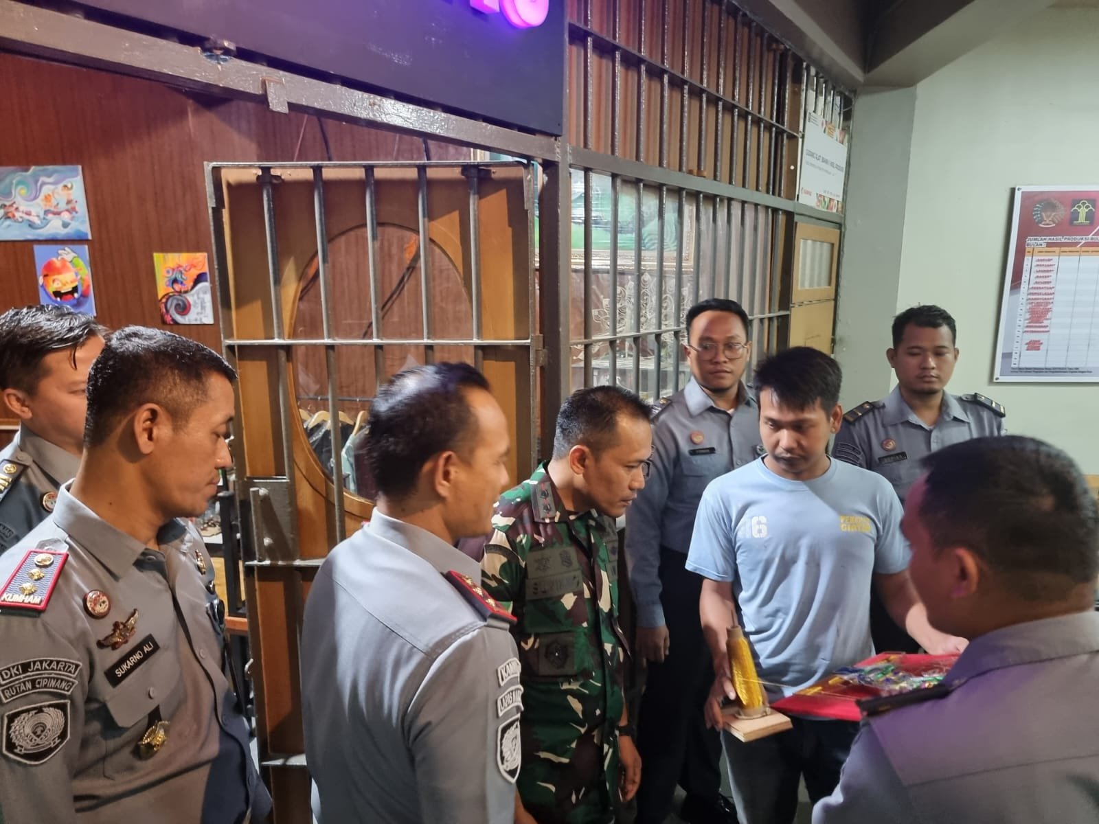 Dandim 0505/JT Letkol Arm Suyikno,S,Sos,M,Si, dalam kunjungannya ke Lembaga Pemasyarakatan Kelas I dan Narkotika Kelas II A Cipinang ini dalam rangka mempererat tali silaturahmi dengan Karutan Sukarno Ali, AMD,IP, SH,M,Si, KPR Rutan Febrian Sony, Amd,SIP,M,Si, Kalapas Narkotika Veronika Afandi, AMD,IP,SH,MH, KPLP Narkotika M.Khafi, Amd,IP,S,Sos,M,Si, bersama Staf Lapas.