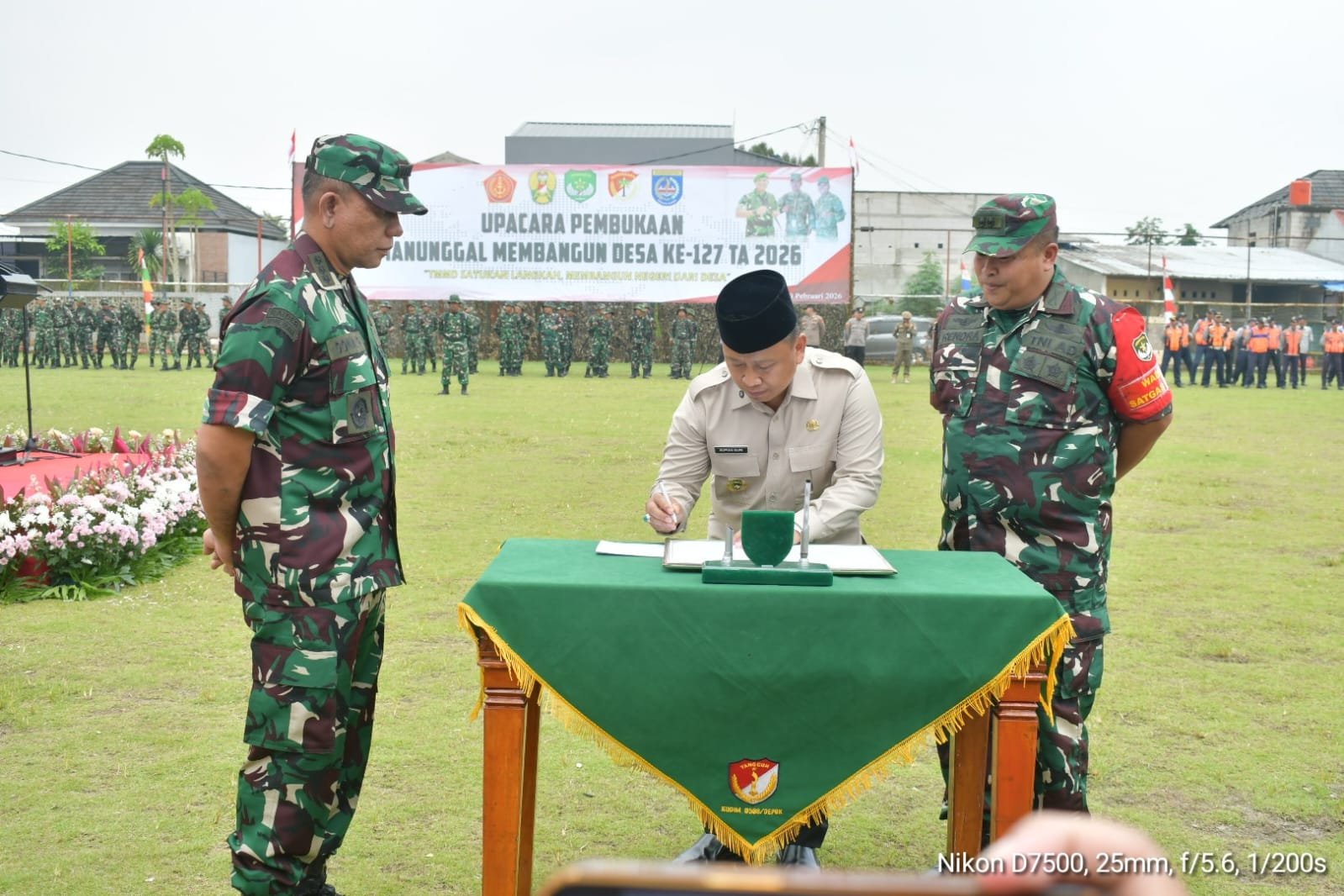 Program TMMD Tahun Anggaran 2026 tersebut resmi dibuka melalui upacara di Lapangan Gelora Bojong Lio, Sukmajaya, Selasa (13/2/2026), dengan mengusung tema “TMMD Satukan Langkah Membangun Negeri dari Desa”.