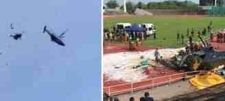Dalam latihan itu, salah satu helikopter terlihat menabrak rotor belakang helikopter lain hingga menyebabkan keduanya berputar-putar dan jatuh.