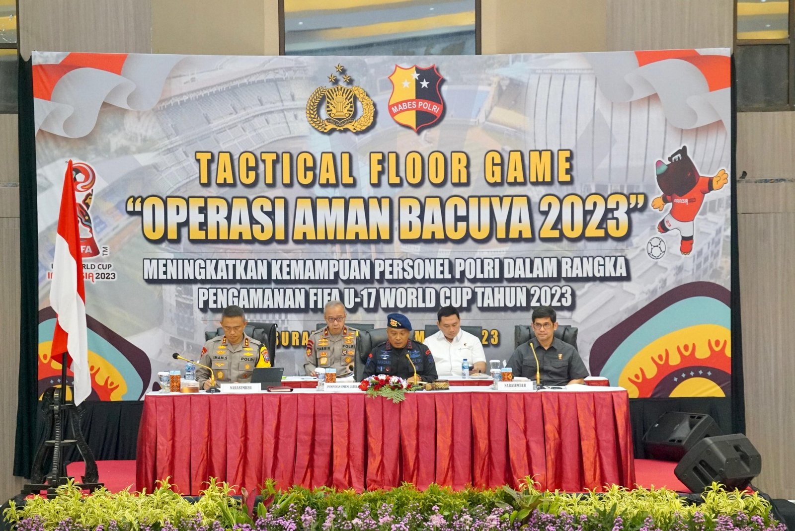 Radarjakarta.id | SURABAYA – Wakil Komandan Korps Brimob Polri Irjen Pol. Ramdani Hidayat, S.H., membuka Tactical Floor Game (TFG) pada Latihan Operasi Aman Bacuya 2023 dalam rangka pengamanan Fifa World Cup Usia 17 Tahun. Kegiatan tersebut bertempat di Gedung Mahameru Mapolda Jawa Timur, Jalan Jenderal Ahmad Yani No. 116, Kota Surabaya pada Rabu (8/11/2023).
