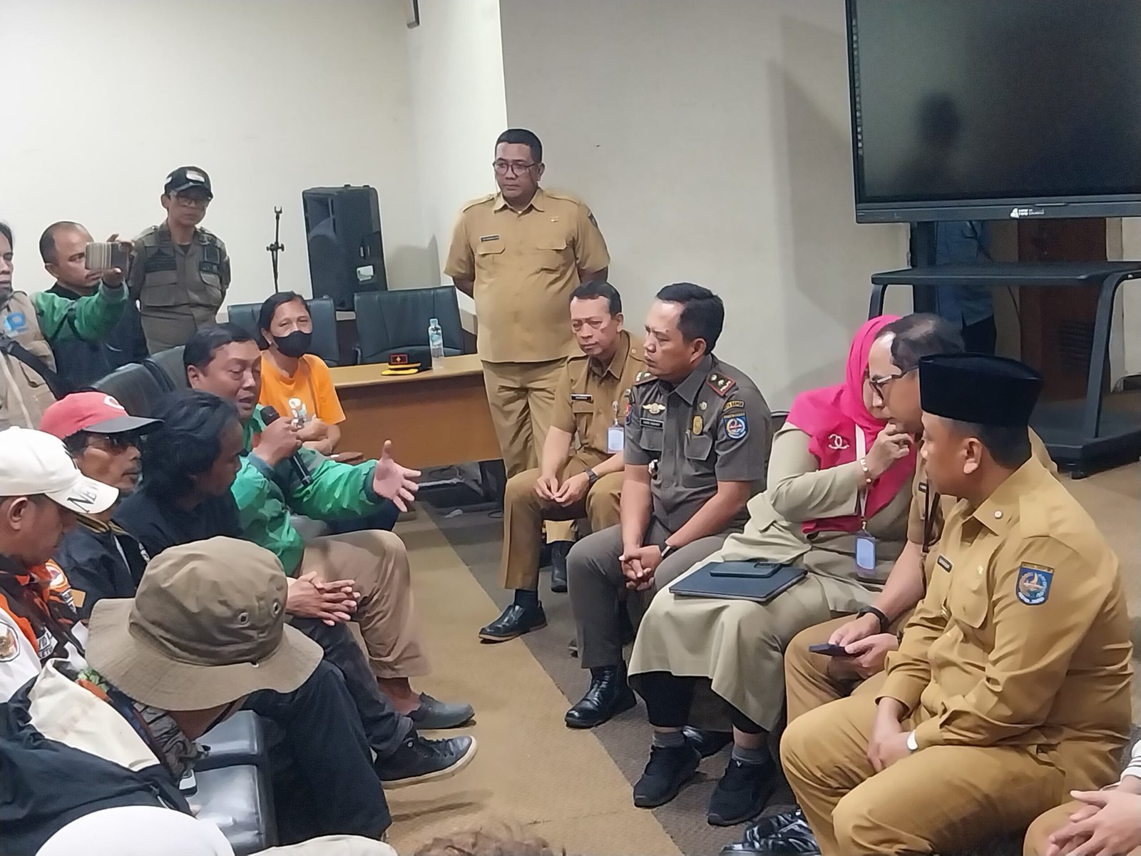 DEPOK, Radarjakarta.id – Wali Kota Depok, H Supian Suri bertemu dan berdialog dengan massa pendemo UHC yang mengatasnamakan Aliansi Rakyat Bantu Rakyat di Balai Kota Jalan Margonda.