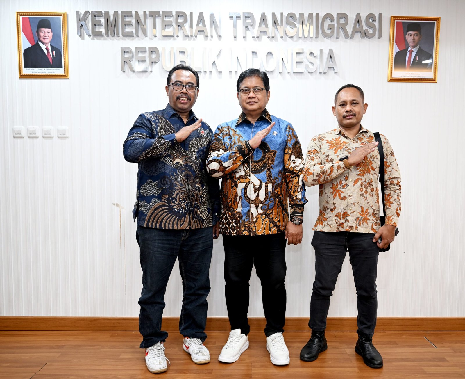 JAKARTA, Radarjakarta.id – Wakil Menteri Transmigrasi Viva Yoga Mauladi menerima kunjungan Ketua Umum Dewan Pengurus Pusat Perhimpunan Anak Transmigran Republik Indonesia (DPP PATRI) Bambang Sulistiyo dan Sekretaris Jenderal Imam Muhadi di Ruang Kerja, Gedung C, Komplek Kantor Kementerian Transmigrasi, Kalibata, Jakarta.